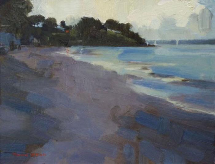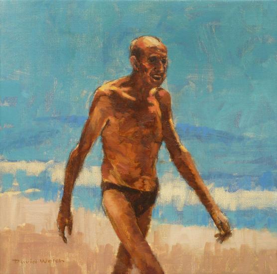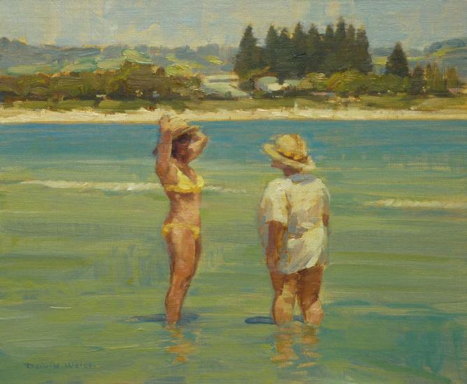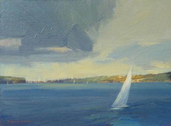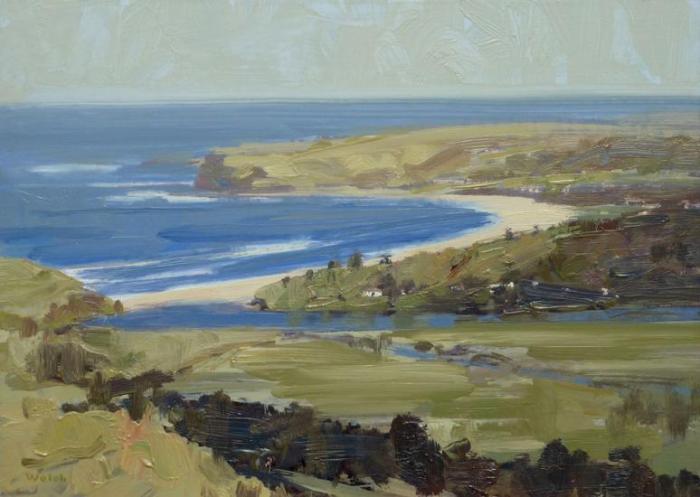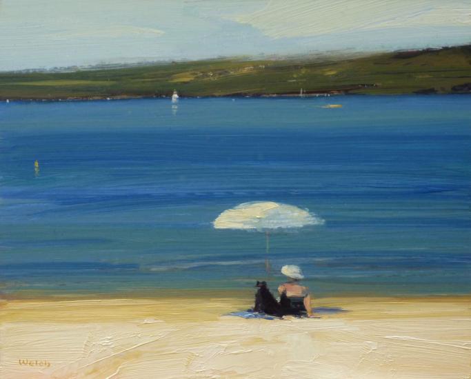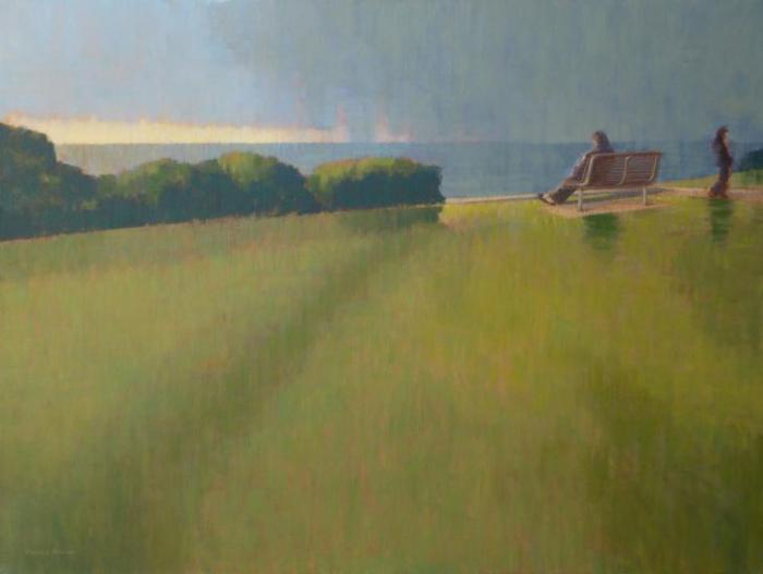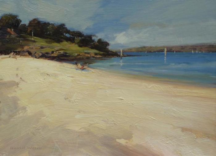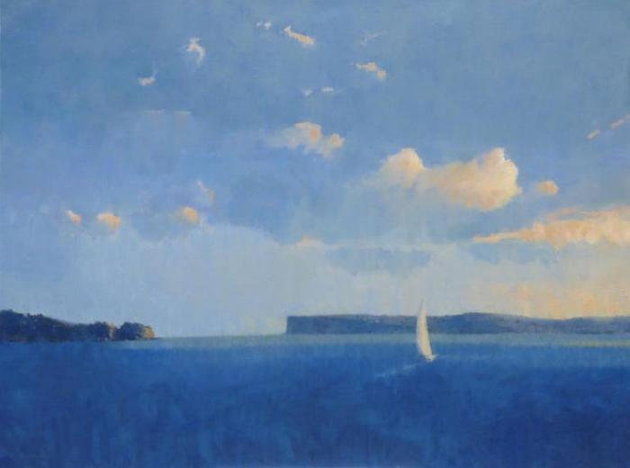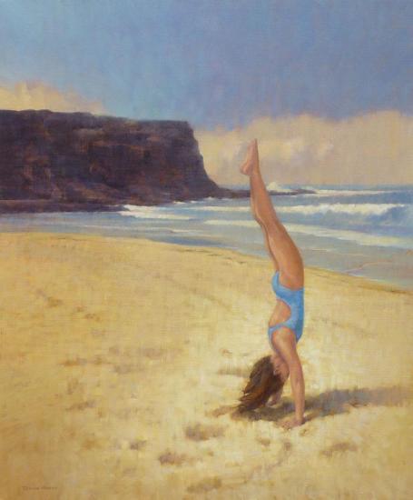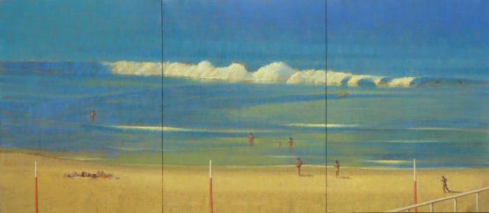 As the comedian Billy Connolly once demanded of the Australian national anthem. ‘Girt? What’s a girt?’ Girt by sea of course. Returning to Australia after living in Paris for many years the first thing that struck me was the pungency and tang of the salt sea air. We Australians for the most part inhabit the green belts of this country and never stray too far from our shores. I’ve often reflected that in the early days of the colony we were transported here against our will, gazed out to sea and dreamt of returning home. Now, over two hundred years later, here we are, and we know that this is our home. Our population enriched by those who recognised the beauty of these shores and came here seeking the opportunity of a better life. This exhibition then is my take on a vast subject, our relationship to the sea. We are bound to it physically and spiritually. I would argue that it is an integral part of our identity as Australians. Gazing out to sea is a hypnotic experience, in doing so we enter into a communion with an element that binds us to our sense of who we are . Our earliest memories are full of this landscape, a day out at the beach or harbour, a birthright, a playground free to all, to offer ones body to the sun and sea, the kind of ritual few can resist.
